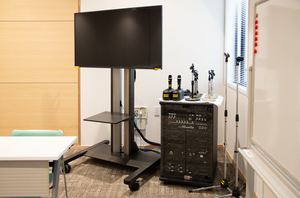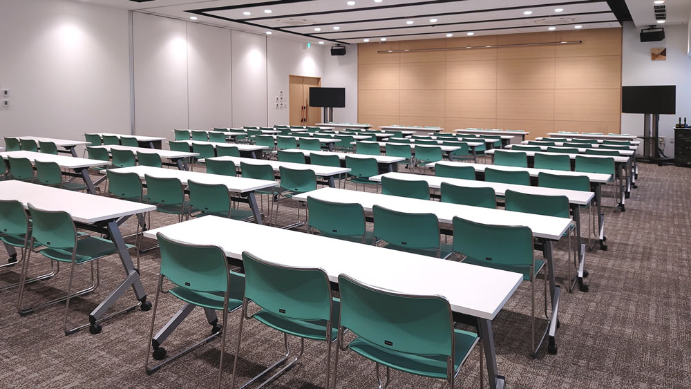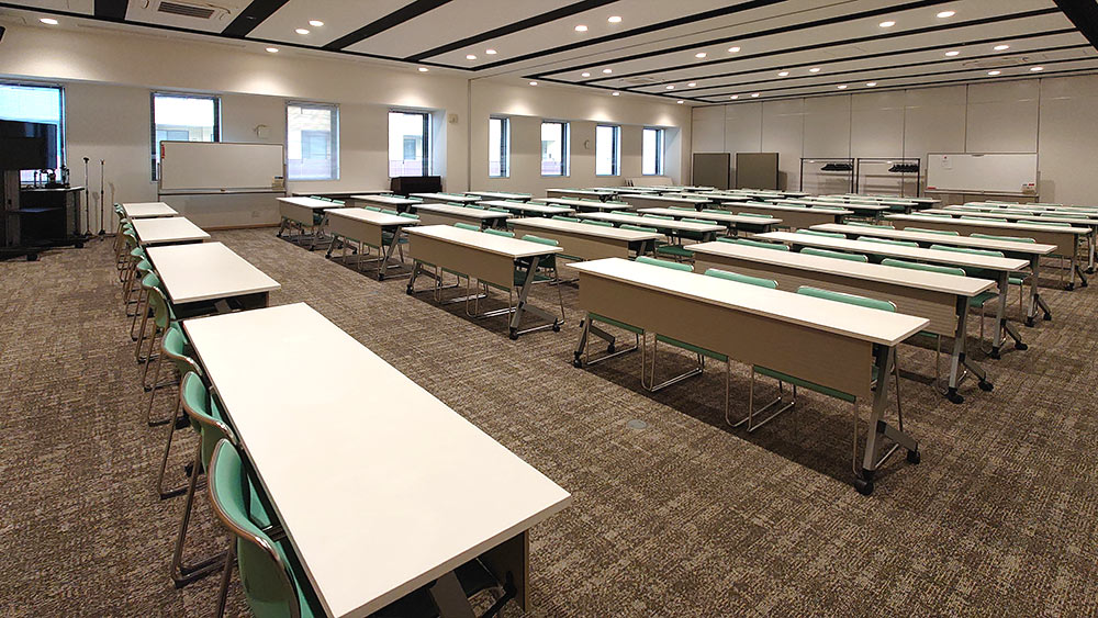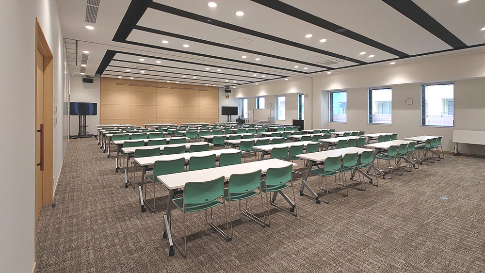 | オプション設備 | マイク ホワイトボード スクリーン(吊り下げ型、移動型、各1台) データプロジェクター プロジェクター モニター DVDプレーヤー CDプレーヤー |